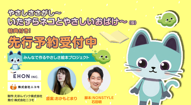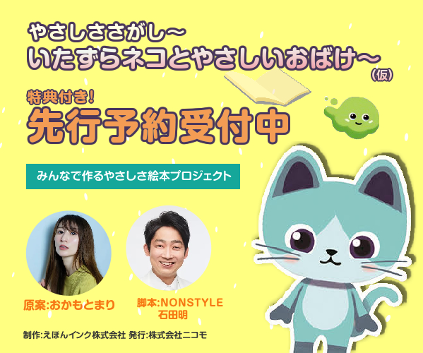 - タイトル:絵本「やさしささがし〜いたずらネコとやさしいおばけ〜(仮)」